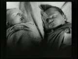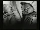 2 babies faces+ blankets-split screen; Objects, places all vacant, motionless-most come back later as city wakes up