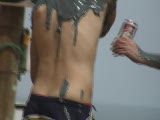 person rubbing mud on her back