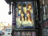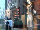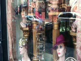 storefront window of hair salon,3 busts; in window