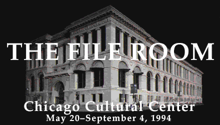 Initiated as an artist's project by Muntadas, The File Room was originally produced by Randolph Street Gallery (a non-profit artist run center in Chicago,IL, 1979-1998) with the support of the School of Art and Design and the Electronic Visualization Laboratory at the University of Illinois at Chicago. Since 2001 The File Room (TFR) has been hosted and maintained by the National Coalition Against Censorship. TFR remains an organic initiative; its shape ultimately determined by the input of participants. Thank you for your past support and participation. And for visiting today. ---Muntadas |